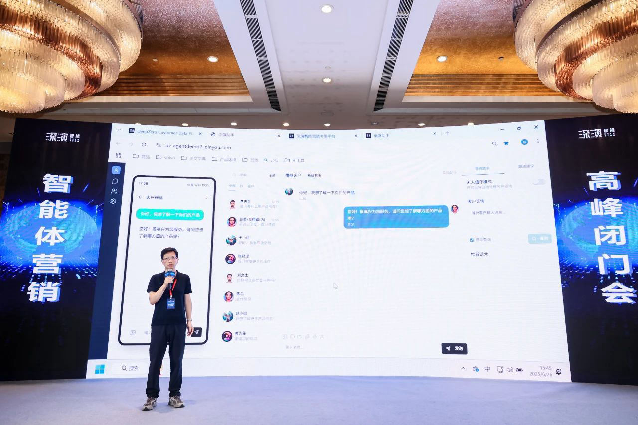 作为已经成功帮助几十家大型企业 AI Agent落地的行业领导者,888电子智能DeepAgent Neo全面赋能营销域和销售域。 黄晓南和888电子智能CTO欧阳辰与888电子智能副总裁曹玉骥一起,为嘉宾现场演示了CRM、Social、销售、客服等场景的全面智能体,情景展现了DeepAgent Neo如何全面赋能企业各个环节。