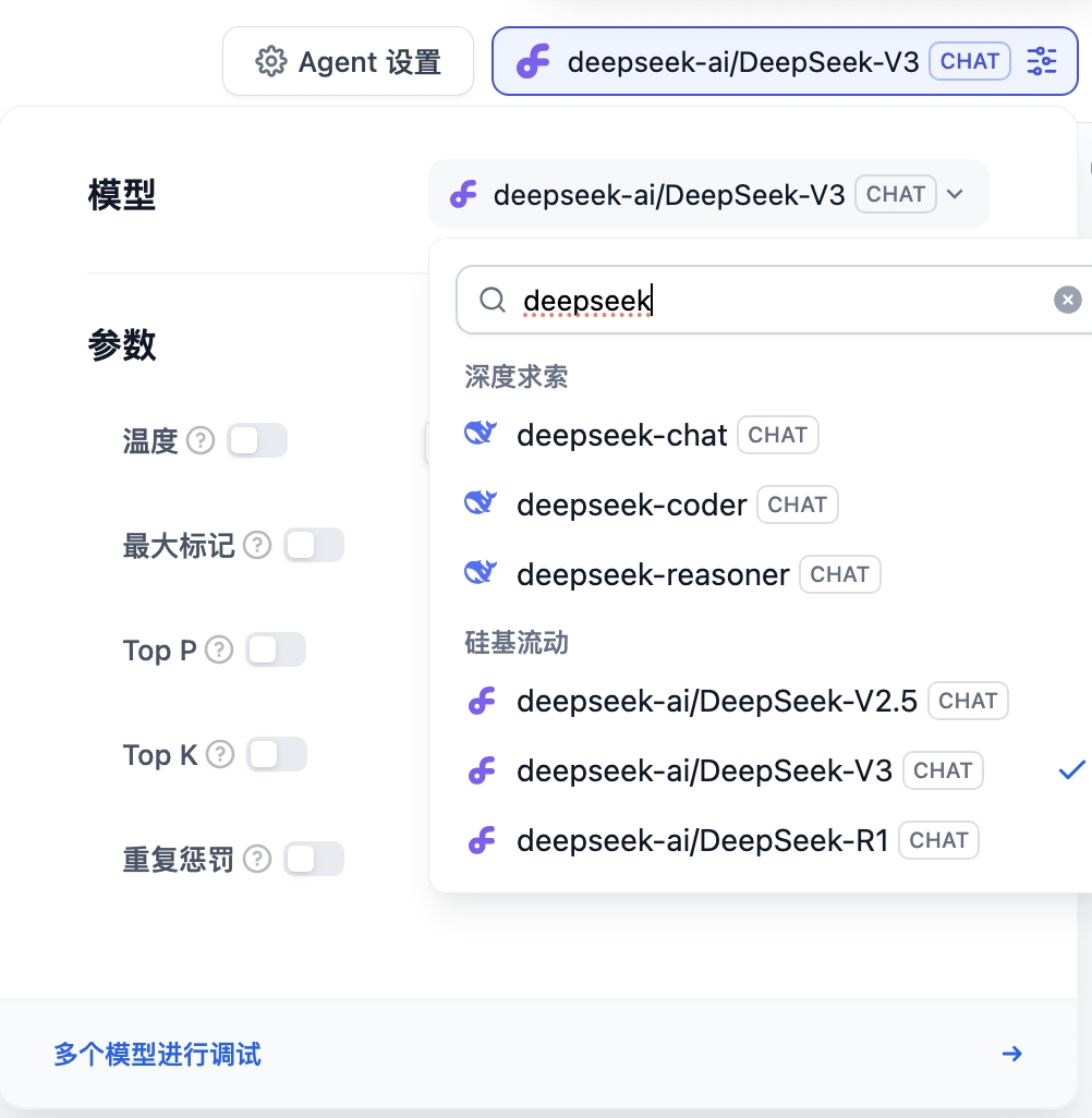 在888电子智能的全新AI Agent平台中,已经可以轻松调用 DeepSeek 最新的V3 和 R1 模型,此前,888电子智能也已经可以支持如 OpenAI 的 GPT 系列、Anthropic 的 Claude 系列等主流的模型供应商。888电子智能多模态的 AI agent 中融入了DeepSeek模型后,通过大模型+小模型的创新模式,为企业的用户运营场景全方位提供升级的智能化赋能。